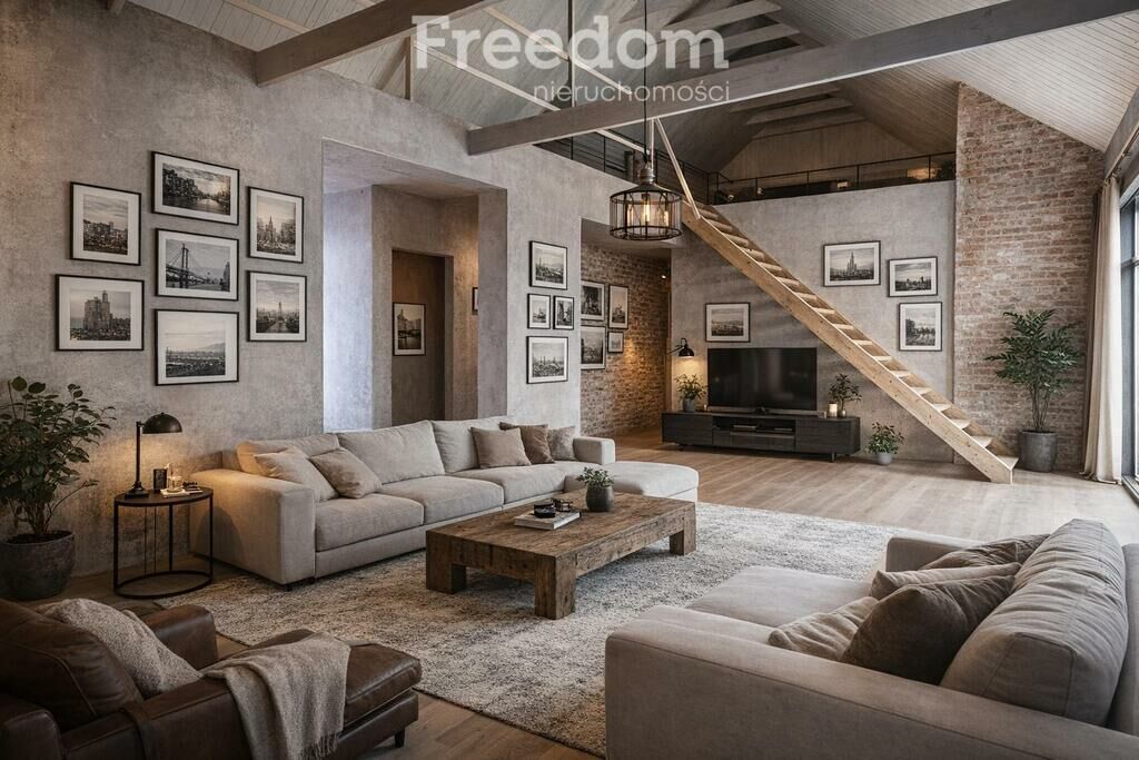 - Przestronny salon z otwartą przestrzenią nad częścią dzienną